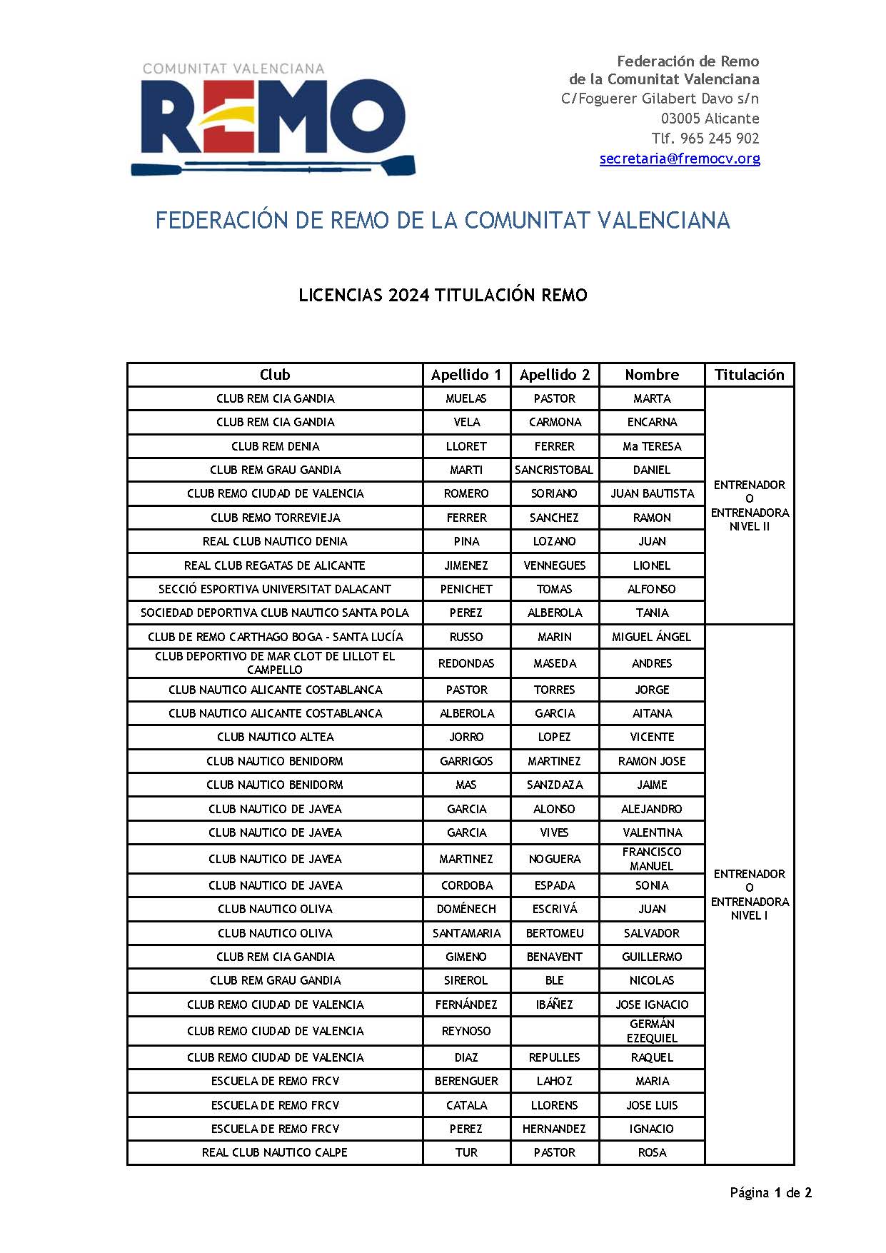Entrenadores con licencia en 2024