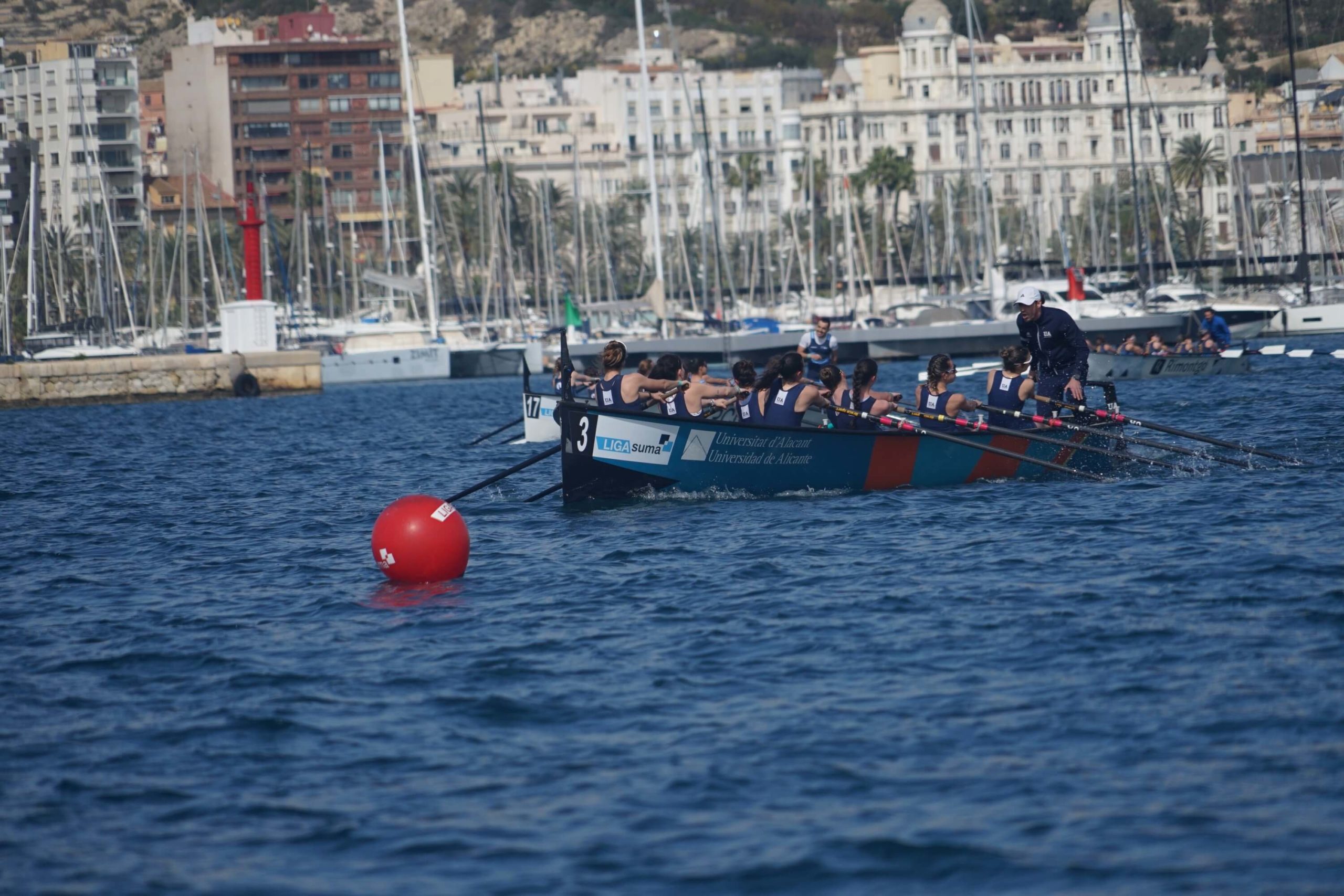 La Liga Suma Banco Fijo del Mediterráneo que celebra la Federación de Remo de la Comunitat Valenciana pasó el pasado domingo por Alicante con su VII Regata. Las condiciones climatológicas fueron favorables y cerca de 700 deportistas remaron en la zona habilitada, en el interior del puerto alicantino. Un total de dieciocho clubes de la Federación valenciana y otros seis invitados, pertenecientes a las federaciones murciana, catalana y andaluza; dejaron un gran espectáculo de remo.
